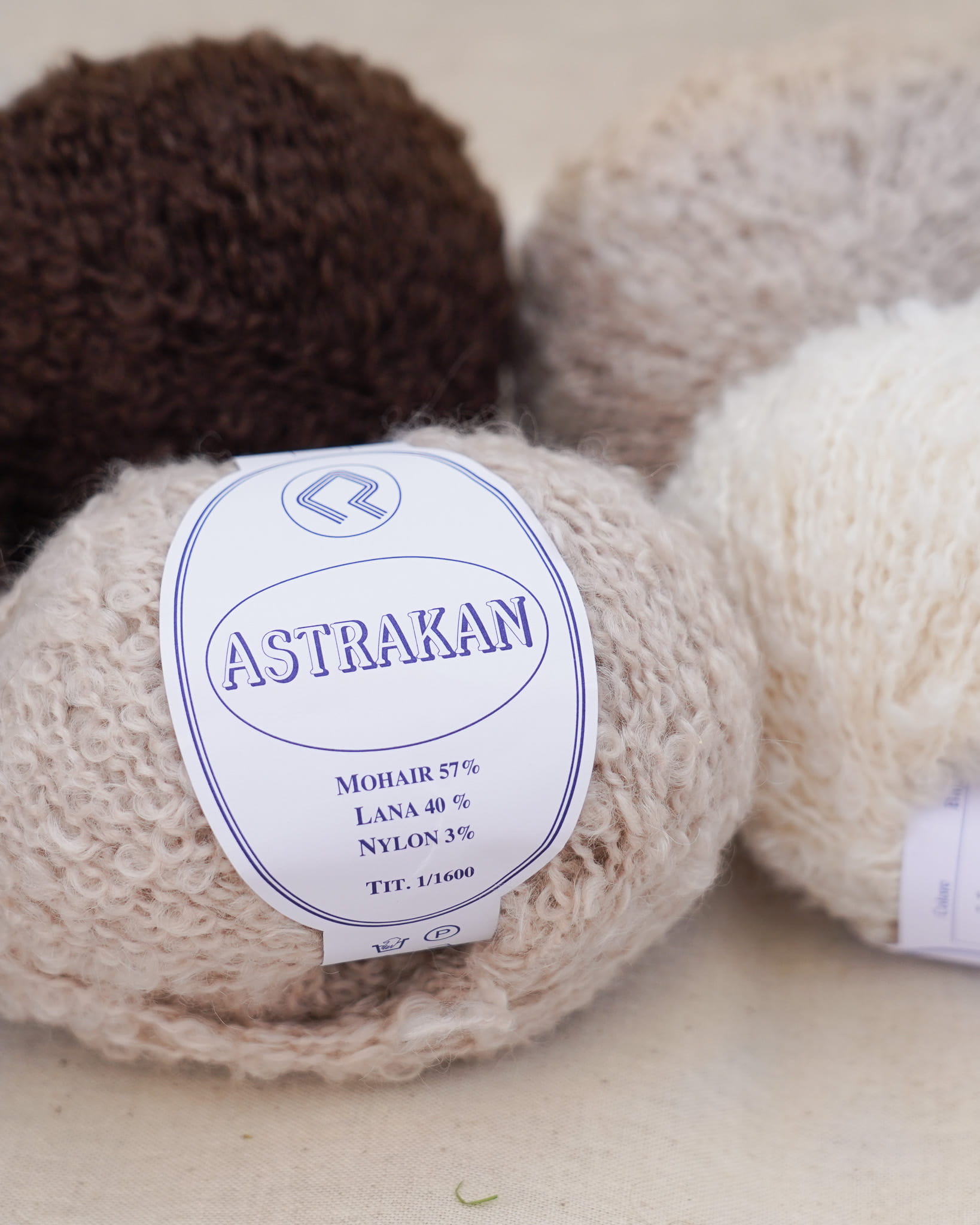 Astrakan to ciepła i wyjątkowo puszysta włóczka– dzięki wysokiej zawartości moheru oraz wełny, tworzy miękką, lekką i elegancką strukturę, idealną do owijania się w chłodne wieczory. Dodatek nylonu wzmacnia włókno, zapewniając większą trwałość i formę dzianiny. Struktura bouclé podkreśla wzory, nadając teksturze głęboki, artystyczny charakter. Klasyczny proces przędzenia i barwienia prowadzony we Florencji od 1954 r.